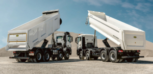 Die Dreiseitenkipper der Serie „Trigenius“ sind aus hochfestem Stahl (HBW450, optional HBW500) gefertigt und eignen sich für den Einsatz auf Baustellen mit wechselnden Anforderungen. Ein besonders effektiver Korrosionsschutz durch KTL-Grundierung, Hohlraumversiegelung und abschließende Farblackierung schützt dauerhaft vor Rost und äußeren Witterungseinflüssen. Die Bordwände des Trigenius lassen sich über die „Bordmatik“ hydraulisch öffnen und schließen, wodurch Abladevorgänge präzise gesteuert werden können.