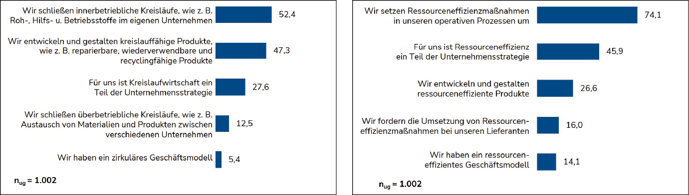 Abbildung 1: Stellenwert von Maßnahmen der KW (links) und RE (rechts) im Unternehmen (n = 1.002) (5)