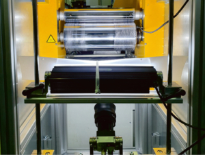 Das Inspektionssystem ist komplett in die Flachfolienextrusionsanlage integriert und erlaubt es, die Belagsbildung im laufenden Prozess zu verfolgen und aufzuzeichnen