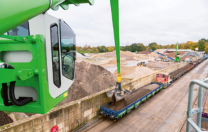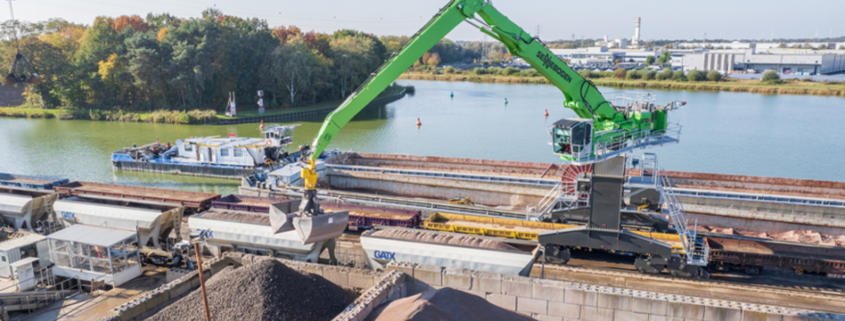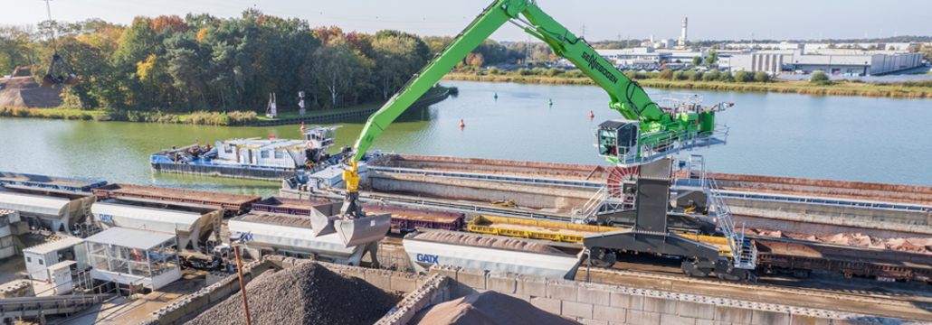 Das traditionsreiche und auf Baustoffe spezialisierte Logistikunternehmen Albert Bergschneider investiert in moderne Umschlagtechnik: Am Hafenstandort Ibbenbüren-Uffeln wurde ein neuer elektrisch-betriebener Sennebogen 870 E mit Schienenportal in Dienst gestellt. Der leistungsstarke Umschlagbagger ersetzt gleich zwei ältere Anlagen – einen Seilportalkran sowie eine weitere Krananlage – und übernimmt fortan den zentralen Schüttgutumschlag zwischen Binnenschiff und Güterzug.