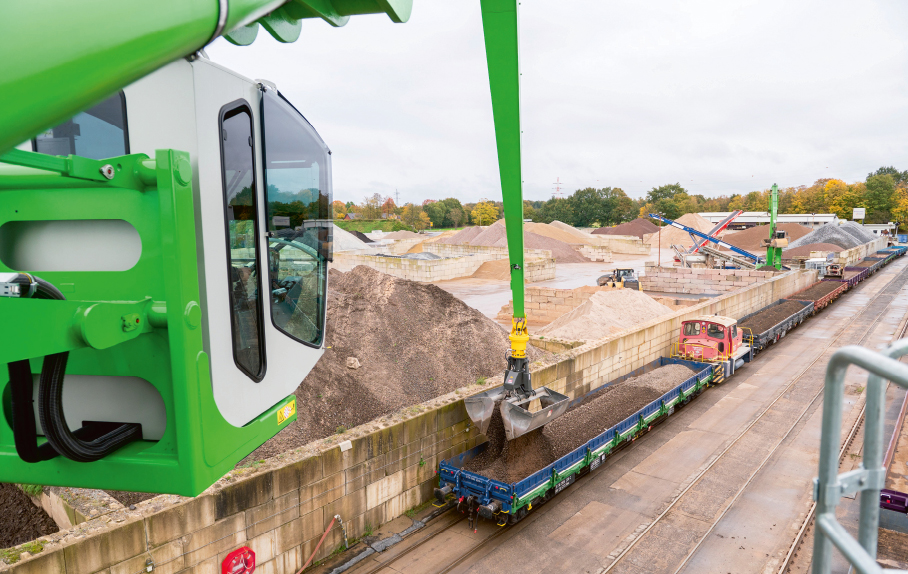 Am Standort Ibbenbüren-Uffeln, direkt am Mittellandkanal, der längsten künstlichen Wasserstraße Deutschlands, wurde die neue Maschine auf einem 340 Meter langen Kai mit angrenzender Lagerhalle und Bahnanschluss installiert. Der Sennebogen 870 E auf Schienenportal übernimmt am Standort die Verladung von Schüttgut zwischen Binnenschiff und Güterzug und ersetzt sukzessive zwei ältere Krananlagen.