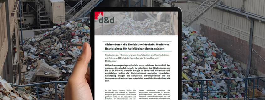 Ein aktuelles White Paper der d&d Brandschutzsysteme GmbH analysiert die spezifischen Brandgefahren insbesondere in den Bereichen der Zerkleinerer und Müllbunker. Der Leitfaden zeigt auf wie moderne, integrierte Brandschutzlösungen Ausfallzeiten signifikant reduzieren können. Branddaten aus der Abfallwirtschaft belegen, dass die oben genannten drei Bereiche das höchste Risikopotential darstellen. Die mechanische Beanspruchung kann bei leicht entzündlichen Materialien zu Glutnestern führen, die sich durch Sauerstoffzufuhr rasch zu offenen Bränden entwickeln. Als besonders problematisch entpuppt sich die zeitliche Verzögerung zwischen Entstehung und Entdeckung – Glutnester entwickeln sich oft unbemerkt und werden erst beim Transport sichtbar.