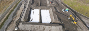 Im Mittelpunkt des Pilotprojekts steht der Einsatz einer innovativen Sorptionsmatte zur In-situ-Entfernung von PFAS aus dem entstehenden Sickerwasser. Die Matte bindet PFAS-Verbindungen mithilfe von Ionenaustauschern und Adsorptionsprozessen und entzieht sie so dem Stoffkreislauf. Das Sickerwasser kann die Matte weiterhin ungehindert passieren, wird anschließend über eine Drainage erfasst und der regulären Sickerwasserbehandlung zugeführt. Parallel wird untersucht, in welchem Umfang und über welchen Zeitraum die Sorptionsmatten die PFAS langfristig binden können. Das Versuchsfeld befindet sich im DK III-Bereich der Deponie. Es umfasst zwei Teilflächen von jeweils 30 x 10 Metern mit einem Gesamtvolumen von rund 1.000 Kubikmetern. Eine vollständige Basisabdichtung mit einer Kunststoffdichtungsbahn (KDB) gewährleistet eine sichere Ablagerung des Materials.