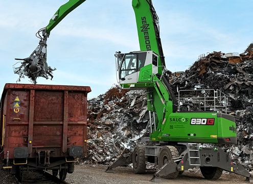 SENNEBOGEN Umschlagmaschine aus grünem Stahl im nachhaltigen Stahlschrottrecycling